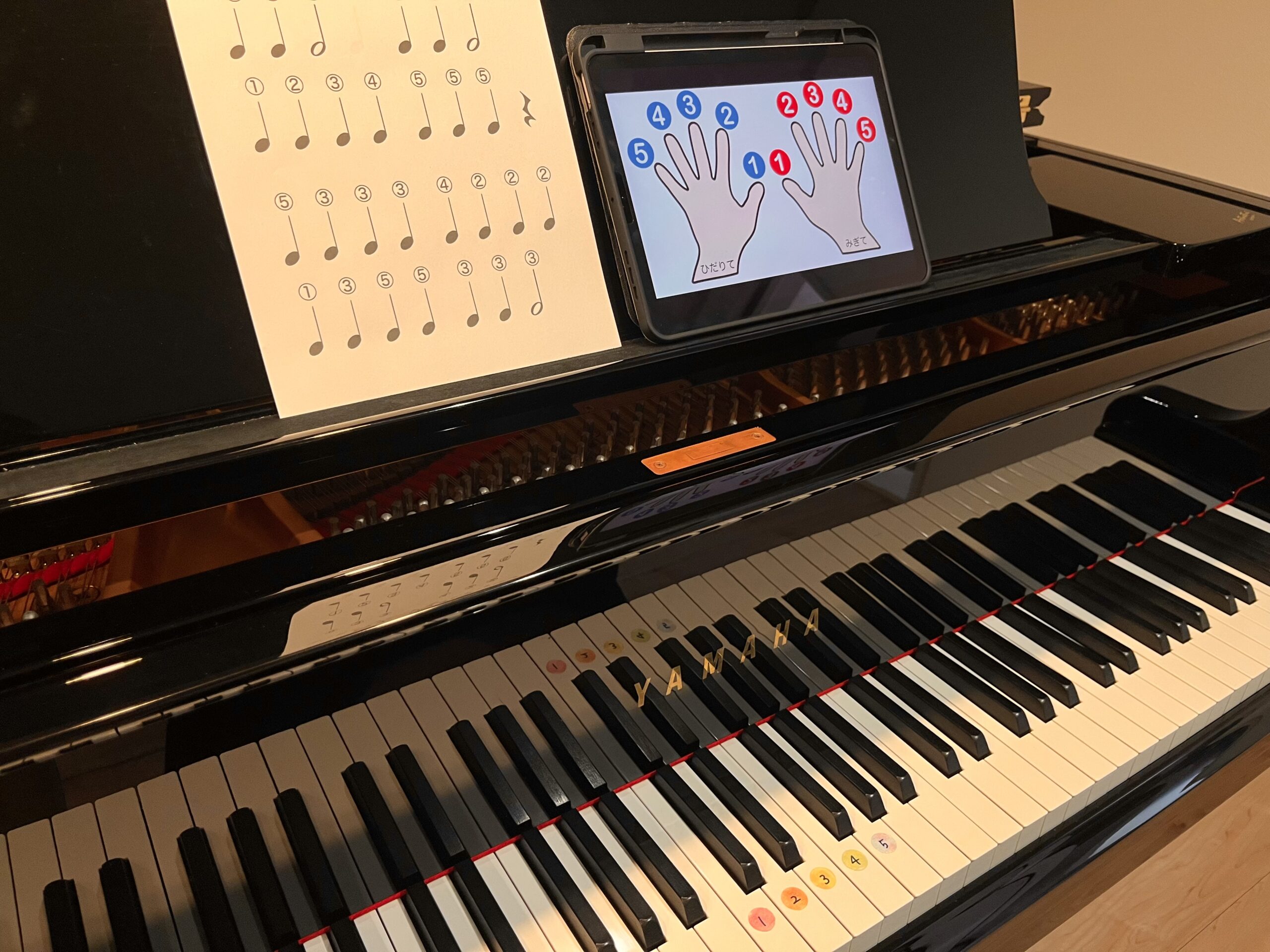 オリジナルのタブレット教材や、一人一人に合わせたプリントの作成も行っています。初心者の方向けの教材を多数ご用意しておりますので、ご自宅に楽器がない方でもビギナーレッスンをご受講いただけます。